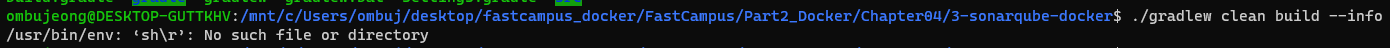 gradlew 파일을 dos2unix를 설치해서 변환해주었습니다.