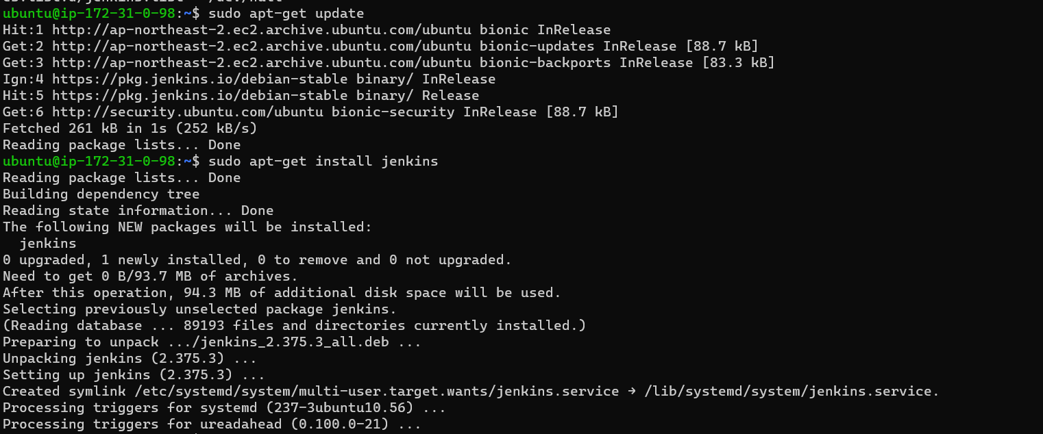 설치 가능한 패키지 리스트를 최신화후 jenkins 설치